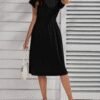 Kadın Kısa Kollu Kruvaze Yakalı örme Puantiyeli Krep Elbise