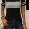 Kadın Kısa Kollu önü Yazı Baskılı Basic Süprem Bluz