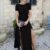 Kadın Kısa Kollu Sırt Dekolte Detay önü çift Yırtmaçlı Viskon Elbise