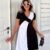 Kadın Kısa Kollu V Yaka Asimetrik Siyah Beyaz Geçişli Diz üstü Elbise