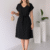 Kadın Kısa Kollu V Yakalı Beli Kuşaklı Ithal Keten Elbise
