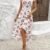Kadın Kısa Kollu V Yakalı çiçek Desenli önü Kısa Arkası Uzun Süprem Elbise