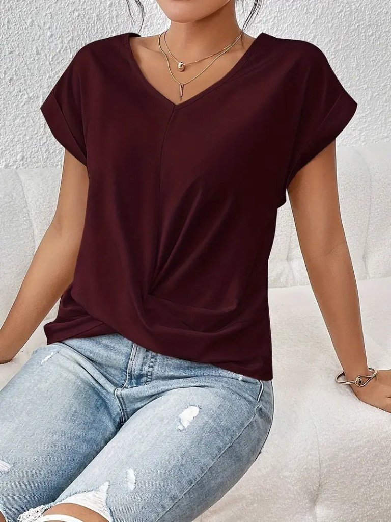 Kadın Kısa Kollu V Yakalı önden çapraz Geçmeli Detay Viskon Bluz
