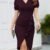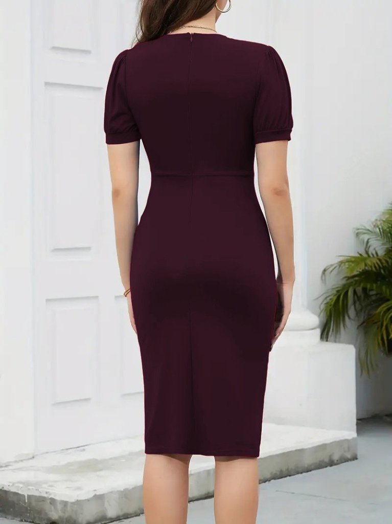 Kadın Kısa Kollu V Yakalı önden Fırfırlı Ithal Krep Elbise