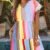Kadın Kısa Kollu V Yakalı şerit Desenli Süprem Elbise
