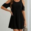 Kadın Kısa Kollu Yakası Bağcıklı Kuş Gözü Detay Süprem Bluz