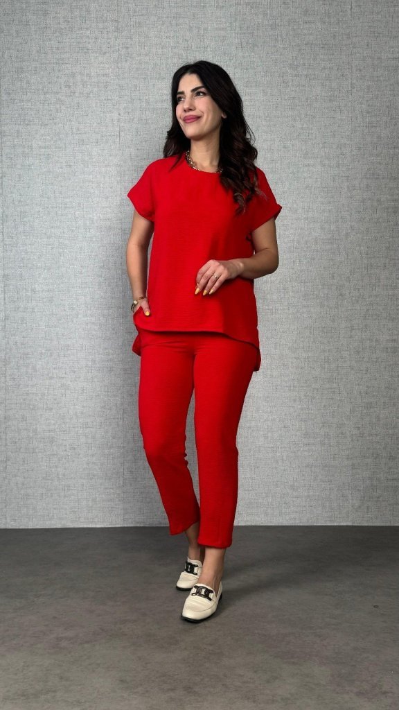 Kadın Kısa Kollu Yuvarlak Yaka Aerobin Bluz Ve Pantolon Ikili Takım