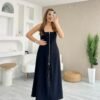 Kadın Kolsuz Boyundan çapraz Geçirmeli Göğüs Damla Detay Kaşkorse Bluz