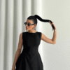 Kadın Krep Kumaş Flok Detaylı Elbise