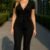 Kadın Kruvaze Yaka Kısa Kollu Kuşaklı Tulum