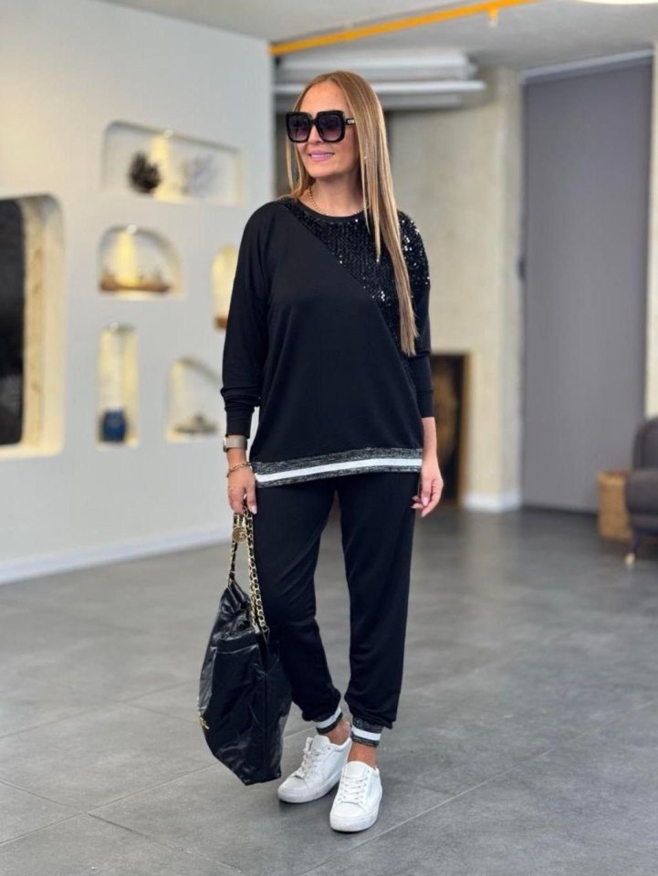 Kadın Modal Kumaş Payetli Sim Ve Ribanalı Detay Ikili Takım