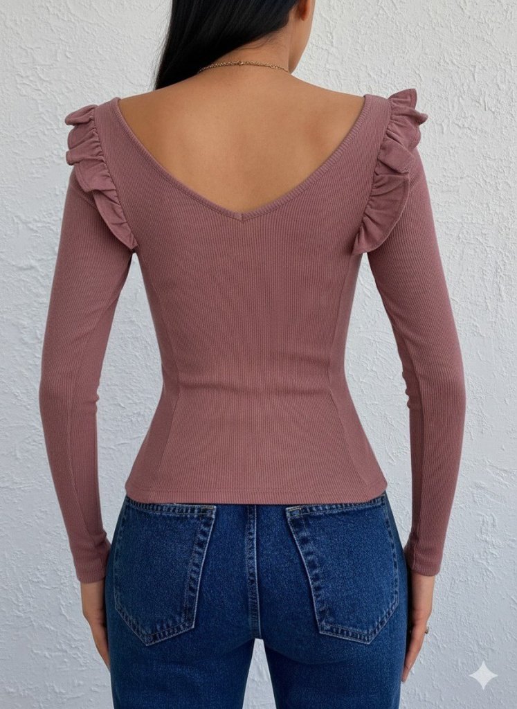 Kadın Omuz Fırfır Detay Uzun Kollu Bluz