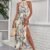 Kadın Omuzlardan Açık Halter Yakalı Yırtmaçlı çiçek Desenli Süprem Elbise