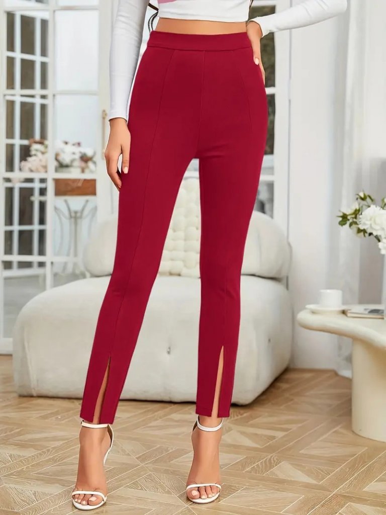 Kadın önden Yırtmaçlı Yüksek Bel Ithal Krep Pantolon