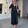 Kadın Sıfır Kollu V Yakalı çiçek Baskılı Beli Kuşaklı Dalgıç Elbise