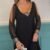 Kadın Siyah Uzun Kollu Kollar Tül Yırtmaçlı V Yakalı Kısa Krep Elbise