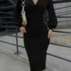Kadın Truvakar Kol çift Renkli Düğmeli Kısa Ithal Krep Elbise