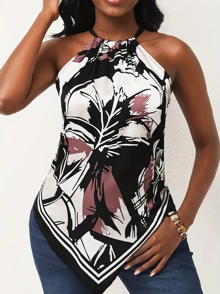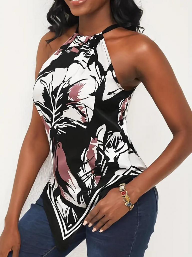 Kadın üçgen Kesim Boyundan Bağlamalı çiçek Desen Süprem Bluz