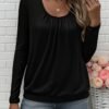 Kadın Uzun Dantel Kollu Bisiklet Yaka Viskon Bluz