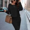 Kadın Uzun Dantel Kollu Yuvarlak Yakalı Sandy Bluz