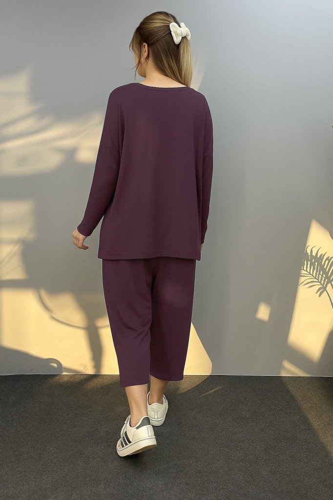 Kadın Uzun Kollu Arma Detaylı Iki Iplik Viskon Ikili Takım