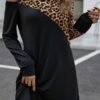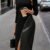 Kadın Uzun Kollu Asimetrik Yırtmaç Deri Detaylı Midi Ithal Krep Elbise