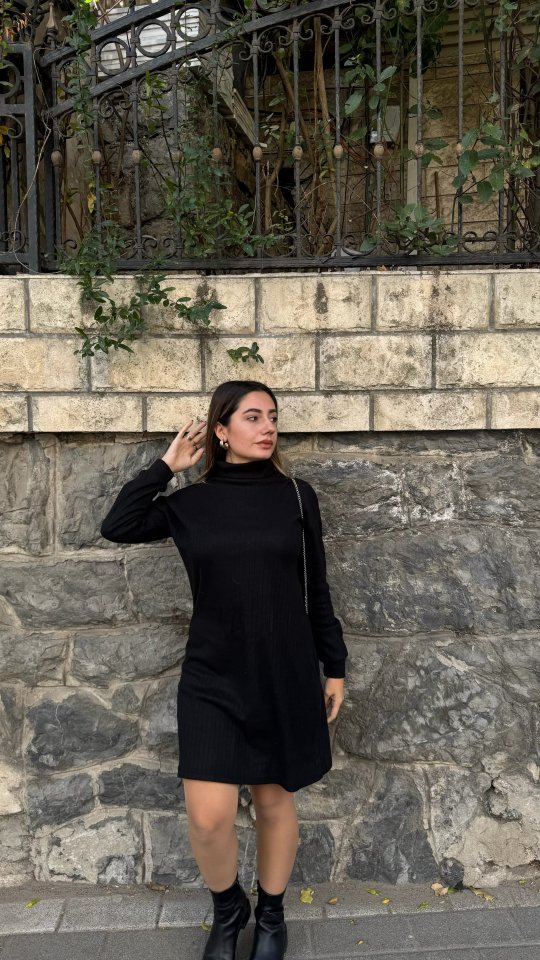 Kadın Uzun Kollu Balıkçı Yaka Kısa şardonlu Kaşkorse Elbise