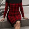 Kadın Uzun Kollu Bisiklet Yaka Belden Bağlamalı Desenli Belden Kuşaklı Mikro Süprem Midi Elbise