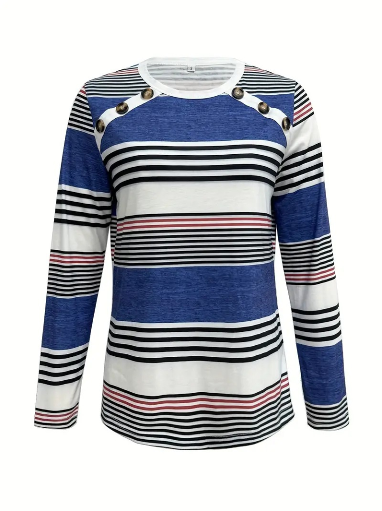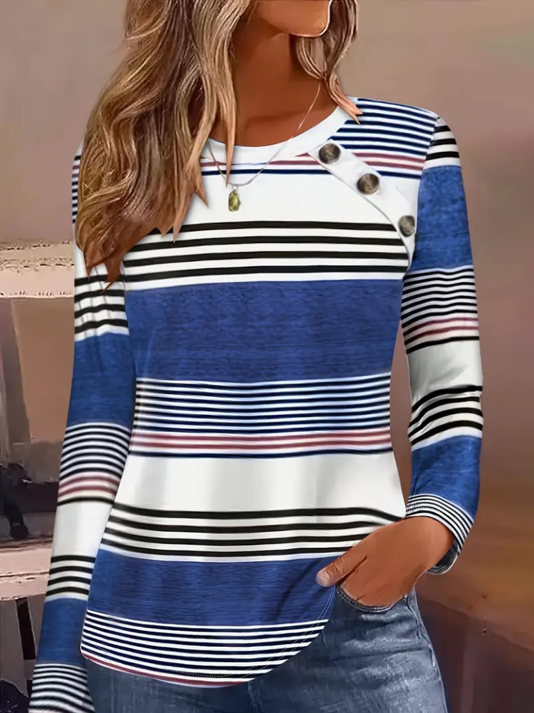 Kadın Uzun Kollu Bisiklet Yaka Düğme Detaylı Desenli Süprem Bluz