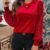 Kadın Uzun Kollu Bisiklet Yaka Kollar Pulpayet Kadife Bluz