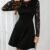 Kadın Uzun Kollu Bisiklet Yaka Kolları Tül Detaylı Mini Ithal Krep Elbise