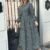 Kadın Uzun Kollu Bisiklet Yaka Papatya Desen Kuşak Dahil Maxi Boy Elbise