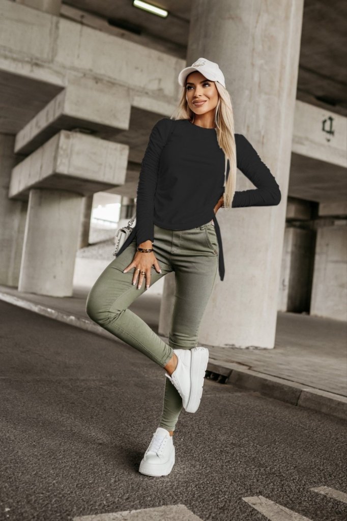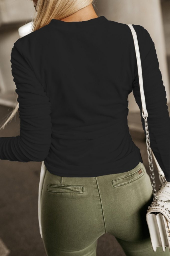 Kadın Uzun Kollu Bisiklet Yaka Yanları Ve Kolları Büzgülü Kadife Bluz