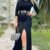 Kadın Uzun Kollu Bisiklet Yaka Yırtmaçlı Kemerli Uzun çilek Elbise