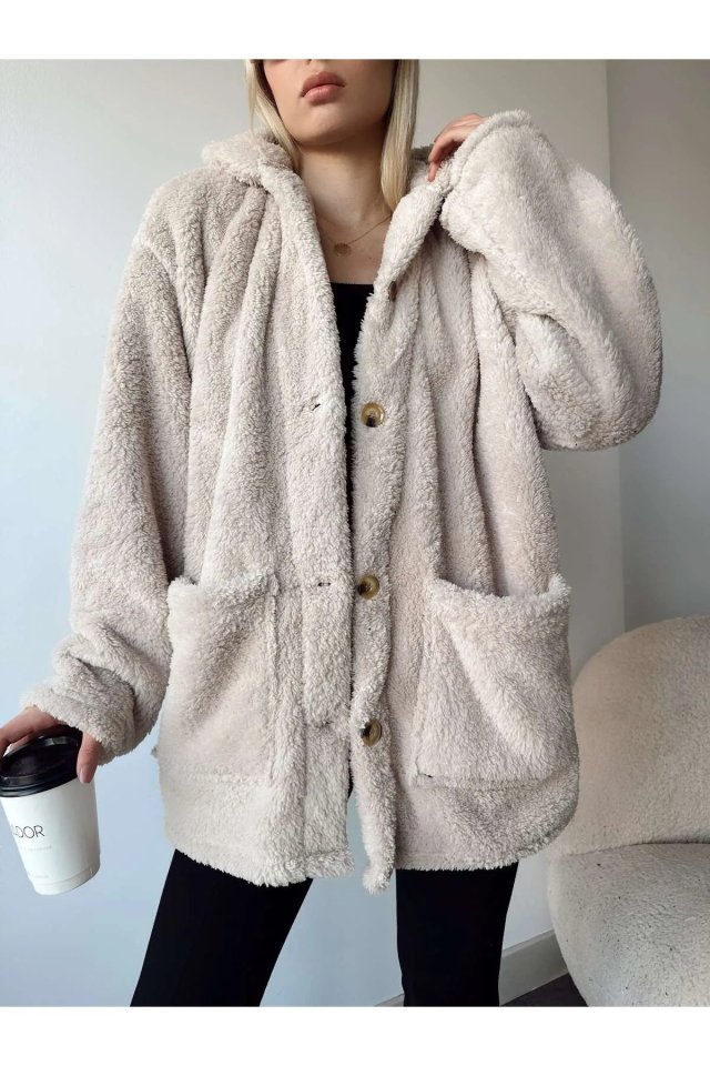 Kadın Uzun Kollu Cep Ve Düğme Detay Wellsof Kumaş Kaban