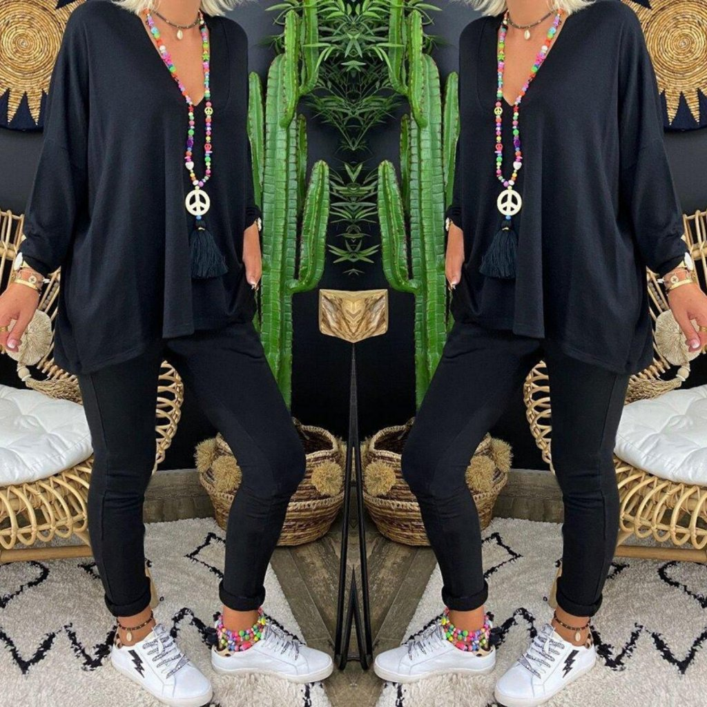 Kadın Uzun Kollu Derin V Yaka ön Kısa Arka Uzun Viskon Bluz