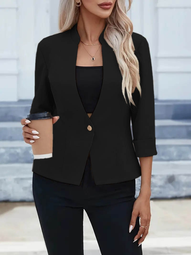 Kadın Uzun Kollu Hakim V Yaka Düğmeli Atlas Ceket