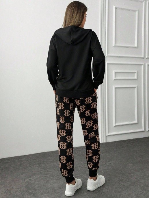 Kadın Uzun Kollu Iki Iplik Kumaş Fermuar Ve Cep Detay Kapüşonlu Ikili Takım
