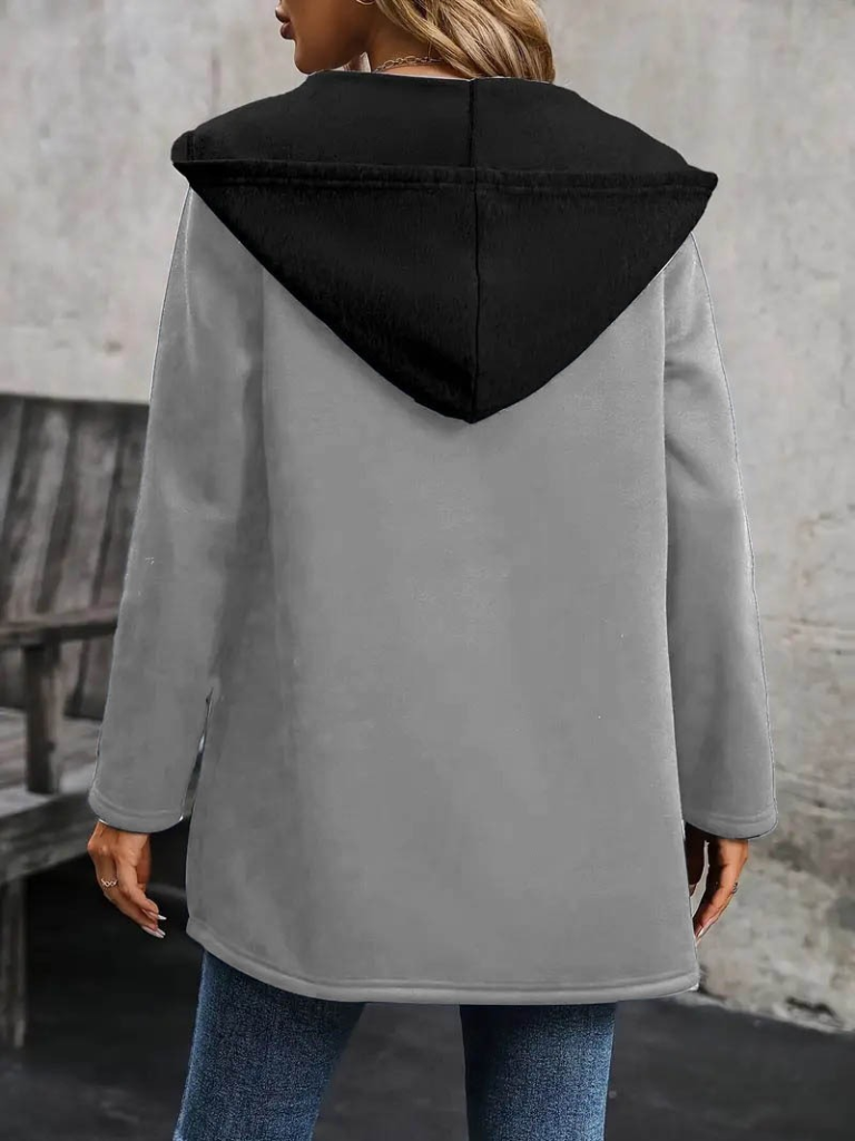 Kadın Uzun Kollu Kapşonlu çift Renkli şardonlu Iki Iplik Ceket