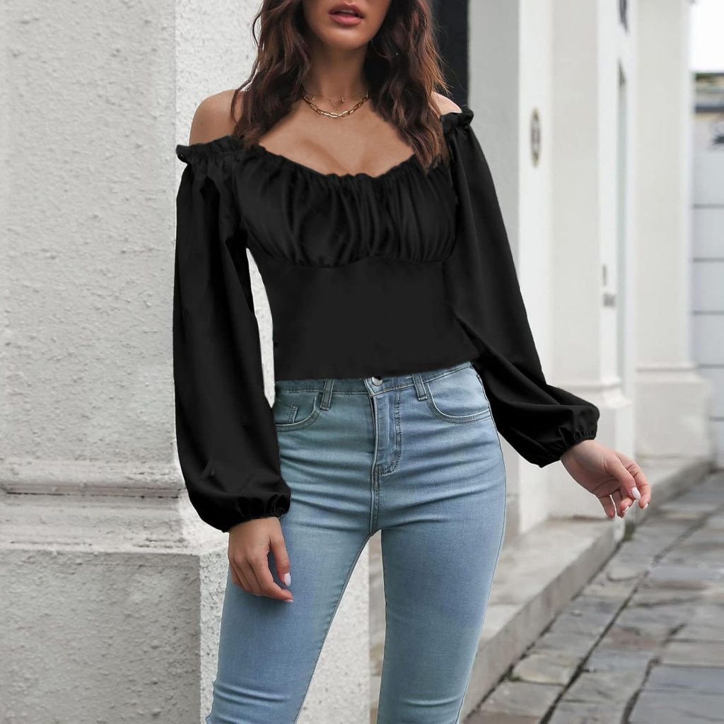 Kadın Uzun Kollu Kare Yaka Göğüs Büzgü Detay Sandy Bluz