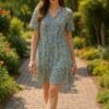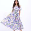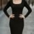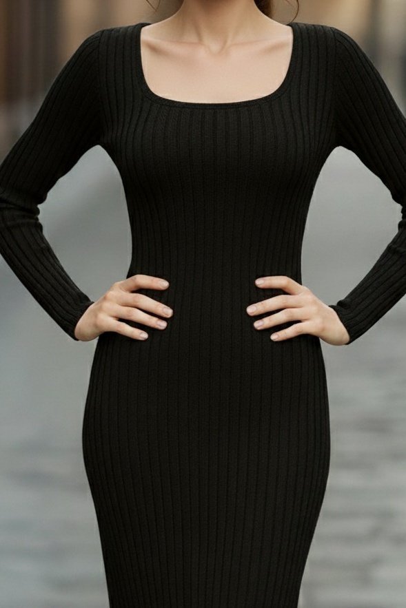 Kadın Uzun Kollu Kare Yakalı Midi şardonlu Kaşkorse Elbise