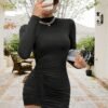 Kadın Uzun Kollu Katlama Detay Madonna Yaka Salaş Kazak
