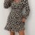 Kadın Uzun Kollu Kruvaze Yaka Desenli Mini Modal Elbise