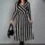 Kadın Uzun Kollu Kruvaze Yaka Kemer Dahil çizgili Triko Elbise