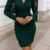 Kadın Uzun Kollu Kruvaze Yaka Mini Ithal Krep Elbise