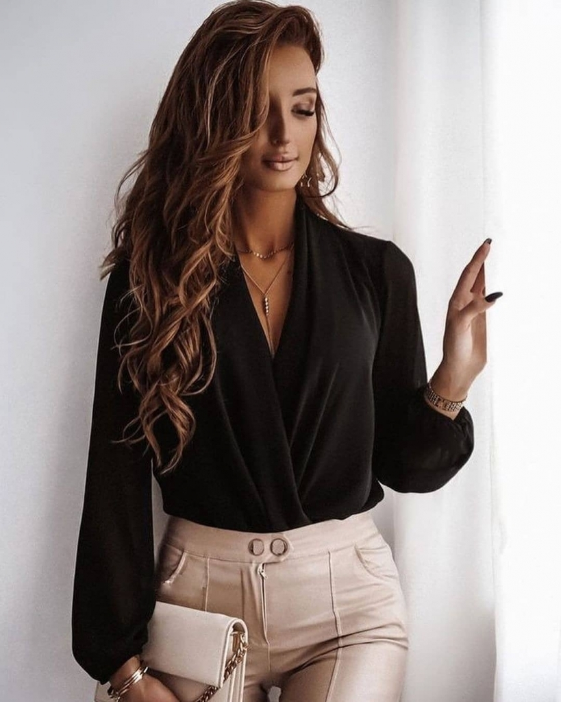Kadın Uzun Kollu Kruvaze Yaka Sandy Bluz