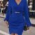 Kadın Uzun Kollu Kruvaze Yaka Yandan Büzgülü Asimetrik Detaylı Ithal Krep Mini Elbise