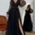 Kadın Uzun Kollu Kruvaze Yakalı Belden Kuşaklı Tüllü Uzun Ithal Krep Elbise