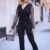 Kadın Uzun Kollu Kruvaze Yakalı Kolları Tül Detay Beli Kuşaklı Ithal Krep Tulum