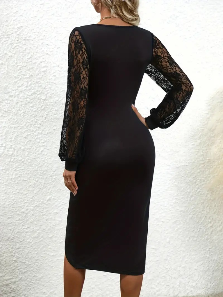 Kadın Uzun Kollu Kruvaze Yakalı Yandan Büzgülü çapraz Kesim Detaylı Midi Ithal Krep Elbise